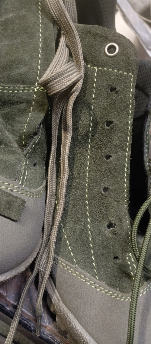 Саими дурки как-то криво расположены - сколько не перешнуровывай - плотного облегания не будет. Шнурки рвутся быстро из-за плохой обработки дырдок. Либо чаще их сделать либо еще чего. Я, к сожалению, не специалист. Те же чинуки, пусть и обувь у них не армейская а рабочая - очень удобно геометрию шнуровок делали (раньше по крайней мере)