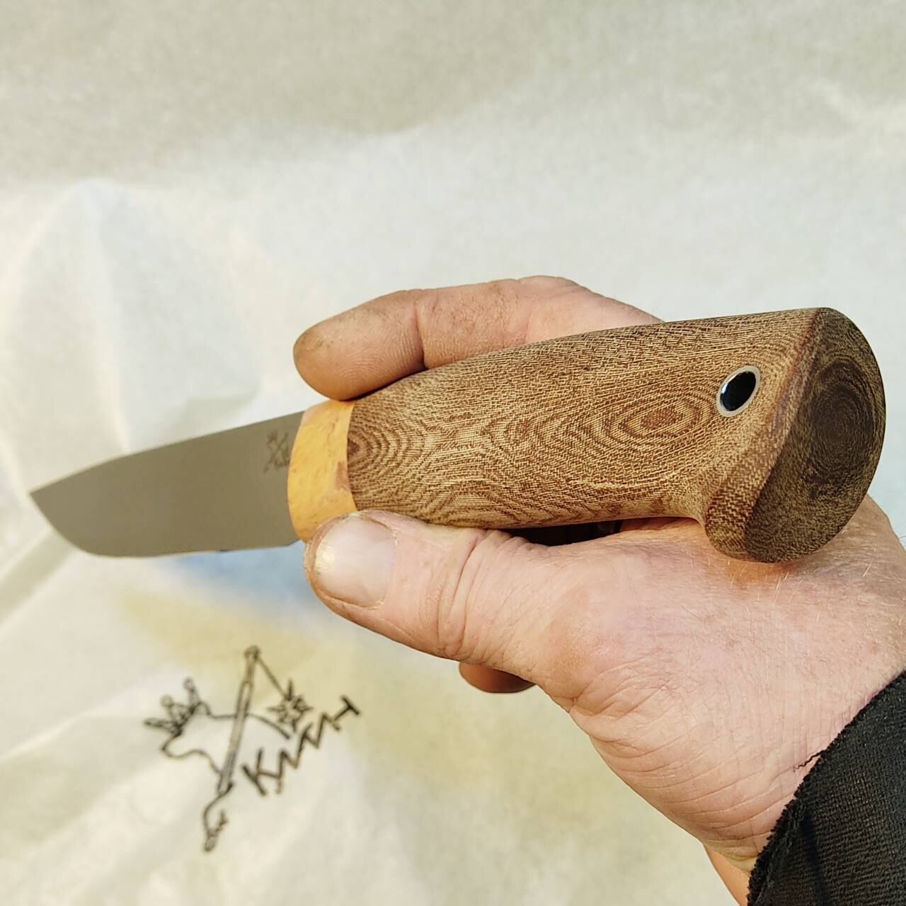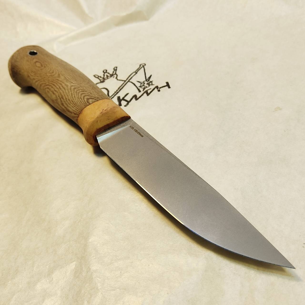 Презентация что ли... Давно хотел такое завернуть. Спасибо брату, с его помощью и настырностью этот проэкт сдвинулся с места и скрипя гриндером завертелся... Задумка "ножы не для всех"-не для гурманов финочников, и не для выживальщиков, и охотники врядли обратят внимание. Это для всех остальных- просто взял и пошёл... Всё для ленивых: нержа от 95х18, 440С, Elmax ну и ламинат от М.Аносова. На рукояти синтетика разная. Хочу привезти на "Клинок" показать-потрогать. А на осень, мечта- свой стенд и много ножиков Названия моделям пока нет. Пока так: М9- девяти сантиметровый нож с упором. Рукоять 11.5см. Варианты: плоские и фигуристые. Монтаж чаще половинчатый. Хвосты разные короткие и полноразмерные. Сведенка: клин и обратная линза(а-ля бритвенная) что-то песоченное, что то сатиненое, есть и травленое. про клины и рукояти касается все модели. Не все успел проклеймить и заточить- спешу ознакомить перед выставкой. М12- нож с клином в районе 12см М9Т- клин 9см и поширше... ну и так как проект совместный с братом вывеска поменялась... Ух скока буковок написал...
