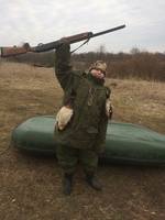 Вечёрка была не интересная, лёт начался за 30 минут перед темнотой, а вот утрянка порадовала. Был с чучелами. Сын остался доволен, с честью переносил тяжёлые сапоги и зимний камуфляж, фиг знает на сколько большего размера. Изъявил желание ходить на охоту и дальше. В общем, процесс "дерафинизации" (имеется в виду женские перегибы воспитания: "он ещё маленький", "ему ещё рано", "пусть лучше в интернете посидит" и т.д.) идёт полным ходом. |