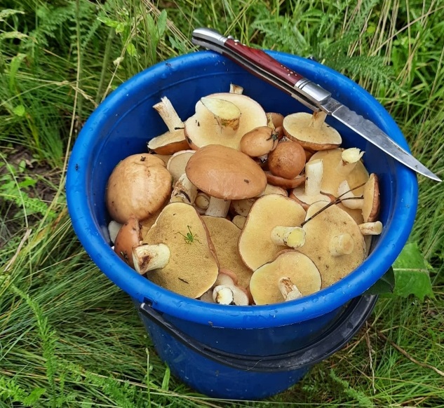 Прошли дожди, гриба - лом. За пару часов набрали, сколько смогли донести. Это только одна корзинка.