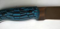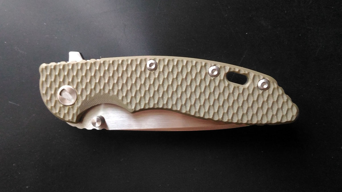 Сделан на мой дилетантский взгляд нормально, на рукоятке накладка - так называемая G-10, а по-моему - просто черный стеклотекстолит, с выемками. В процессе эксплуатации в них скорее всего будет накапливаться пыль...