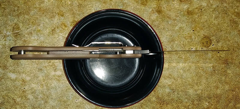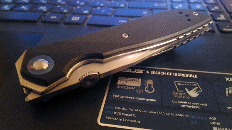 Нож очень не плох.Правда пришлось настраивать.Был не затянут осевой(клин болтался) и винты рукояти посажены на белый фиксатор резьбы.С большим трудом нож разобрал,вычистил грязь,удалил фиксатор и заново собрал на синий фиксатор резьбы.Всё стало по ножеманскому фен-шую.Открытие за вейв с кармана аж страшно,а за таблетку спокойно и мягко.Клин встал по центру,люфтов нет.Из коробки хорошо режет,но поправил на керамике и теперь можно бриться.В руке нож удобен.В общем отличный инструмент.Сталька 8 хром и т.д.,но у китайцев очень хороша.Вес 145 гр.,но на кармане не чувствуется.Китайские ножики
