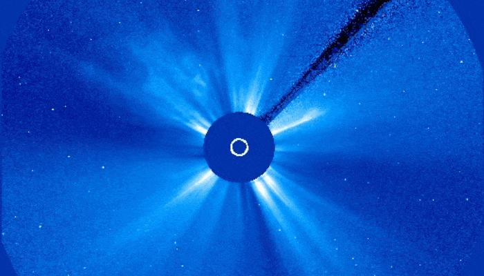 Во время зарегистрированной накануне солнечной вспышки X9.3 произошел крупный выброс солнечного вещества, и он направлен на Землю. Об этом свидетельствуют данные, поступившие с космических солнечных коронографов - уникальных приборов, наблюдающих внешние слои солнечной атмосферы и потоки плазмы в них. Скорость выброса в настоящее время уточняется, но, исходя и обычных для таких событий значений - не менее 1000 км в секунду - уже завтра вечером к нашей планете придут облака плазмы, выброшенные из атмосферы Солнца колоссальной силой взрыва. Характерный размер таких облаков при достижении ими орбиты Земли составляет до 100 миллионов километров и больше. Это значит, что помимо ударного воздействия на магнитное поле Земли, нашу планету ожидает погружение на 1-2 суток в раскаленное вещество, которое еще вчера было частью атмосферы Солнца..."