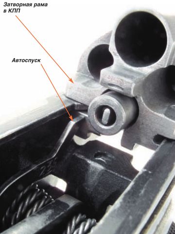 Когда затвор закрыт этот штифт блокирует ствольная коробка: