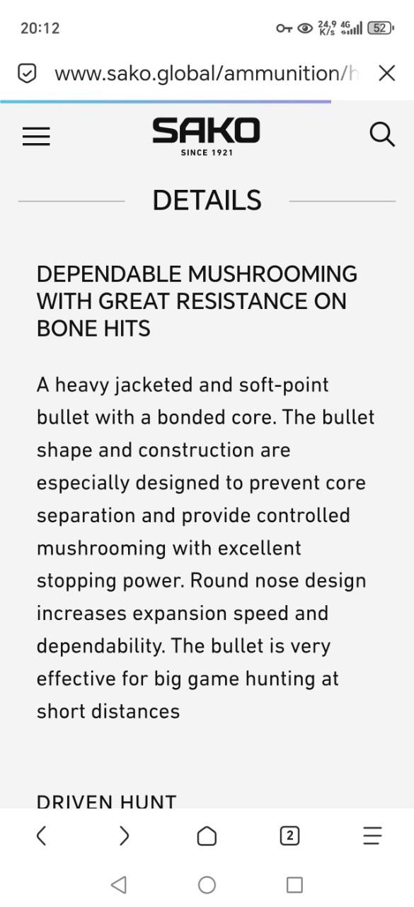 Да посмотрел перевод их описания пули.Действительно "скрепленное ядро".Причем в каталоге предыдущих лет НИ СЛОВА О СВЯЗАННОЙ ОБОЛОЧКЕ. Просто "массивная оболочка".savva 30 06 20-12-2025 22:12