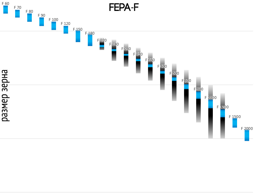 для поверхностных абразивов бумаги и тряпок, увы нету таблицы с FEPA-P - а соотнести их линейно с F, вообще никак невозможно - то на грубых p240=f220, то на тонких внезапно p2000=f600