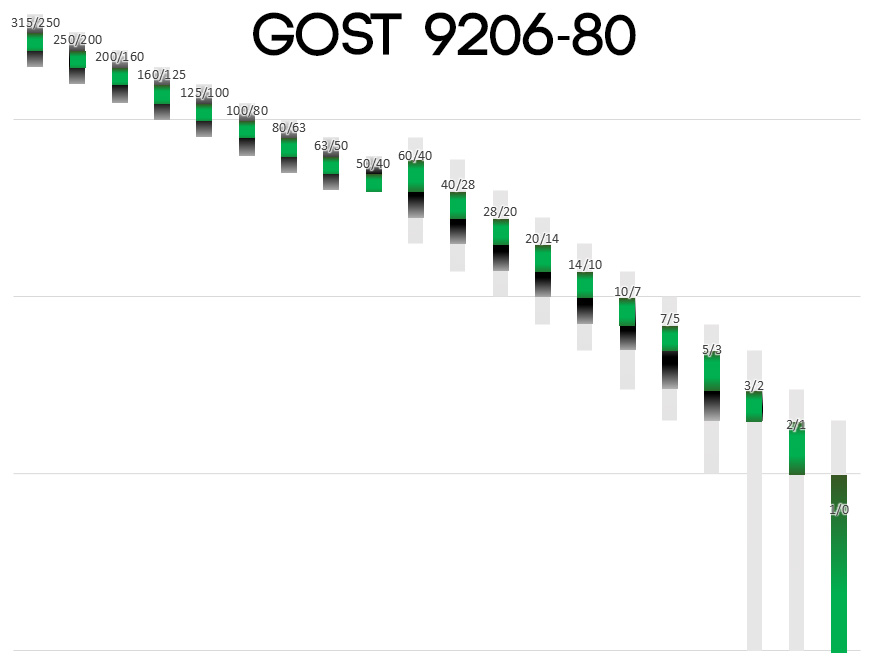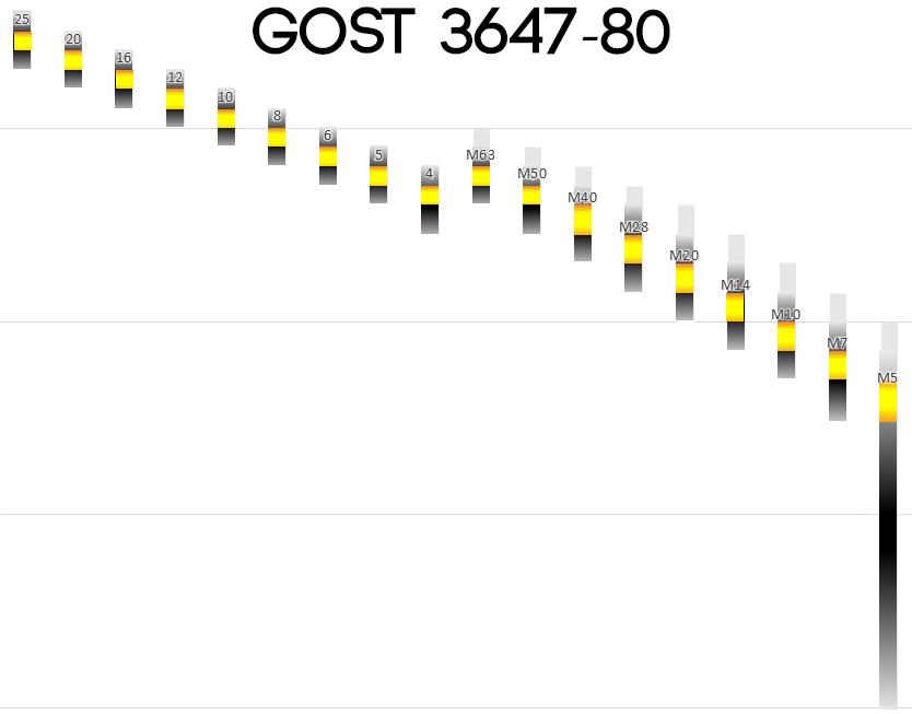 (мкм)--- м5 --- м10 --- м20 --- м40 --- м63 --- (5 пропуск аналог м63) --- 8 --- 12 --- 20