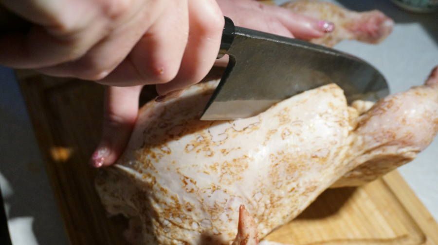 Потом порезали трубу. Режет нормально.. Володя сейчас занят резом шашлыка куриного из бедер.