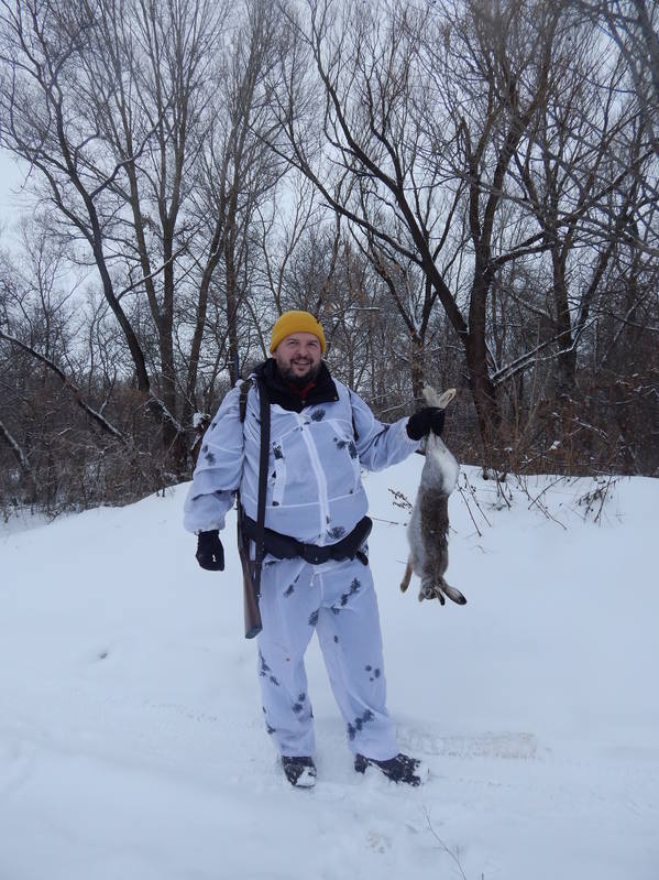 Наконец-то удалось за несколько лет поймать порошу, хоть снег только припудрил все вокруг . Мы с другом рванули в угодья я взял пару молодых собак пусть гуляют , нарабатывают поиск. Хоть заяц дичь не профильная меня это здорово не смущает , как раз самое время отучить от дальних прогонов , приучить к выстрелам, преодолению воды да и дополнительный контакт с хозяином . Прибыли в заданный квадрат , с окна вижу сетку заячьих следов , душа радуется не терпится начать распутывать эту паутину сдвоек , скидок . Ветер дует такой что лицо словно свинцом наливается , аж слезу с глаз вышибает. Русак однозначно скатится туда где тихо-в балки, левады , отсекаю озимые , точно гонные следы идут в низины . Командую Сане где ему идти , место встречи, куда смотреть, сам вцепляюсь в малик , косой без прелюдии делает скидку в заросшую балку , смотрю направление хода , обхожу кругом , выхода нет , режу пополам , чуть сбегая вниз по косогору , насилу торможу в лотке и встречаюсь взглядом с добычей, сжавшись в комок русак лежит на бровке , едва тянусь за ружьем косой выстреливает словно пружина -торопливый дуплет извещает напарника о начавшейся охоте.