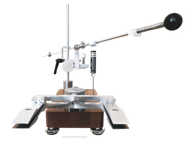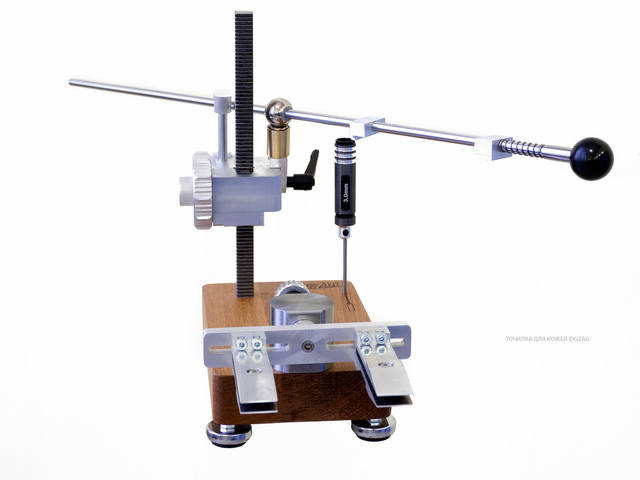 Комплектация: заточная система с дискретным реечным подъемником с автоблокировкой, поворотный механизм с дополнительной регулировкой угла, профессиональный держатель абразива со слайдером и дополнительной опорой угломера, съемная планка поворотного механизма, 2 стандартных зажима, подшипниковый шарнир со втулкой скольжения европейского производства, парковка, ключи. Ручка производство Германия, съемная - на резьбе. Упаковка в картонную коробку. За доп. плату в фанерный ящик.