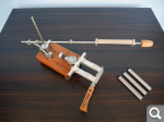 С сегодняшнего дня комплекты идут с новыми стандартными зажимами, с увеличенным растояниием между губками - 4 мм и увеличенной жесткостью. Зажимать со спусками от обуха можно без проблемм, до определенной толщины. Это не отменяет появление дополнительных зажимов, для еще более толстых клинков. Обязательно будут. Просто пока не успел. В первую очередь делаю точилки, что-бы не прокалывать по срокам. Также изменился материал зажимов, теперь В95Т1. Ранее был АМг6. Новые губки имеют большую твердость и износостойкость.