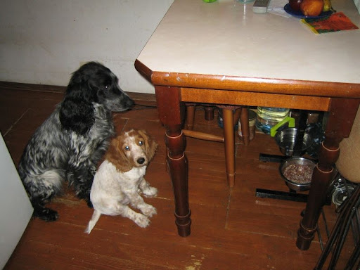 "Фонарик" на хвосте у мамы - Сабанеев цитирует кого-то, что это "признак чистопородности", поэтому знающие ветеринары купируют хвосты так, чтобы он оставался. На некупированных хвостах у спаниелей развивается белый подвес, как флаг, и он держится немного кверху (видел таких за границей). Интересно, что так же выглядят хвосты африканских гиеновидных собак, у них хвосты - типа средство сигнализации в степи.