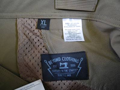 Изготовлен из мембраны Gore-Tex, покрытой не поддерживающим, или как говорят негорючим, и износоустойчивым слоем DuPont Nomex. Очень плотный материал. Парка предполагает не просто дождевик в ливень, это самодостаточный слой и в купе с остальными слоями работает по аналогии легендарных костюмов ECWCS Gen I и Gen II. Думаю многие знакомы с неубиваемыми парками первой и второй генерации эквакса. Данный слой помимо всего прочего в составе ткани имеет кевлар, что дает ему дополнительную прочность на наколы и пробой. Капюшон скручивается в воротник или при необходимости отстегивается, капюшон на молнии. Я такой костюм эксплуатировал в течении сезона в весьма суровых погодных условиях, по пересеченной местности разного характера, от скалистых гор, до непролазной тайги. Весьма практичная вещь, заявляю - не убиваемая! Проныревал в данном костюме через непролазные колючки, ни одного прорыва и даже зацепа! Штатный лайнер к парке в паттерне UCP идет зеленого цвета, для себя я укомплектовывал всегда UCP EWOL лайнером из комплекта под мультикам, потому как цвет такого лайнера больше соответствует открытому пространству в зимний снежный период. Так и здесь предлагаю именно такой комплект. 01.03.2020 10. Негорючий морпеховский первый слой Flame Resistant Silkweight Underwear в размере Large. Размер соответствует армейскому Large-Long. Цвет Tan. Данный не поддерживающий горение слой входит в состав одежды USMC Mountain Cold Weather Clothing System (MCWCS) и Flame Resistant Organizational Gear (FROG). Является где требуется альтернативой обычному горючему нательному слою Silkweight Underwear из состава MCWCS. Именно этот слой FR используется морпехами в составе полевой формы FROG (балаклава, перчатки, боевая рубаха и штаны). 18.03.2020 11. Штаны от Beyond Clothing Axios A5 Rig Light Backcountry Pant в размере XL-Long, цвет Coyote. Штаны A5 Rig Light BС Pant изготовлены из материала Tweave Durastretch. Имеют на борту 6 карманов два брючных, два сзади и два набедренных. Снизу штанин интегрированы скрытые утяжки по объему, если утяжками не пользоваться, то их не видно и штанины имеют брючный вид. Внутри штанин с изнаночной стороны в колени встроен сетчатый клапан, для того чтоб при необходимости можно было соорудить наколенники из подручного материала, снаружи этот клапан не видно. Благодаря высокотехнологичному материалу Tweave Durastretch штаны получились очень прочными и практичными, при этом имеют относительно небольшой вес 580 грамм плюс минус в зависимости от размера. Материал Tweave Durastretch тянется в разные стороны, за счет чего штаны очень удобно сидят и не сковывают движений. Стирать эти штаны можно прям в стиральной машине при температуре 30 градусов Цельсия, выжимать на высоких оборотах. Для стирки я использую жидкое мыло. Сложные загрязнения, например ГСМ, предварительно можно вручную застирать любым посудомоечным средством хорошо растворяющим жиры. Материал этот очень стойкий к стирке и вообще к эксплуатации, не теряет формы и не выцветает. Как я говорил выше, где продаю куртку Cold Fusion, данные штаны отлично с ней сочетаются, формируя слой. В отличии от штатных штанов слоя Cold Fusion, они легче весом, что для штанов немаловажно, и имеют более совершенную конструкцию в деталях. Так как часть тела ниже пояса в отсутствие осадков сверху все равно подвержена более интенсивному намоканию, применения штанов нон-инсулейтед т.е. без ламинации микрофлисом, делает их более универсальными и практичными. В общем такое сочет