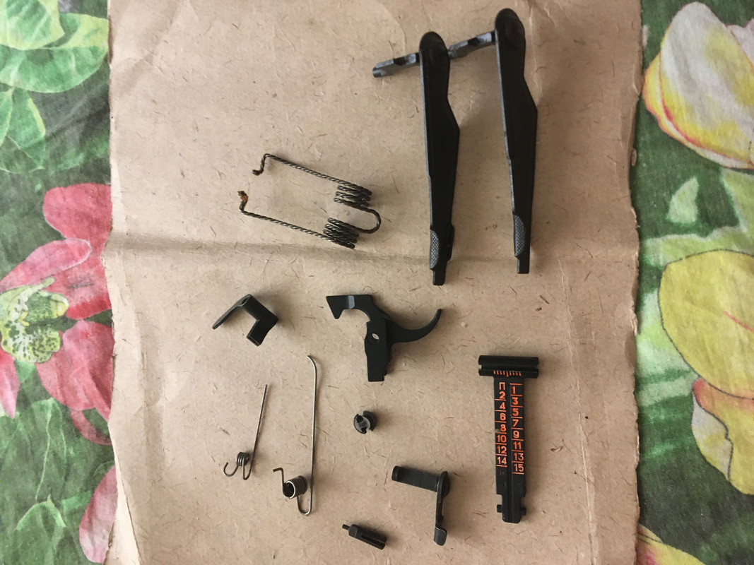 магазны ак-74 5.45 черные новые по 400р - 4 шт спусковой крючок ак по 600р -2 шт боевая пружина ак по 200р - 2 шт курок ак новые по 700р -4 шт шомпол ак 5.45 с резьбой на конце по 150р в идеале УСМ в сборе - 2 комплекта + 2 курка на АК74 где территориально находиться товар? |