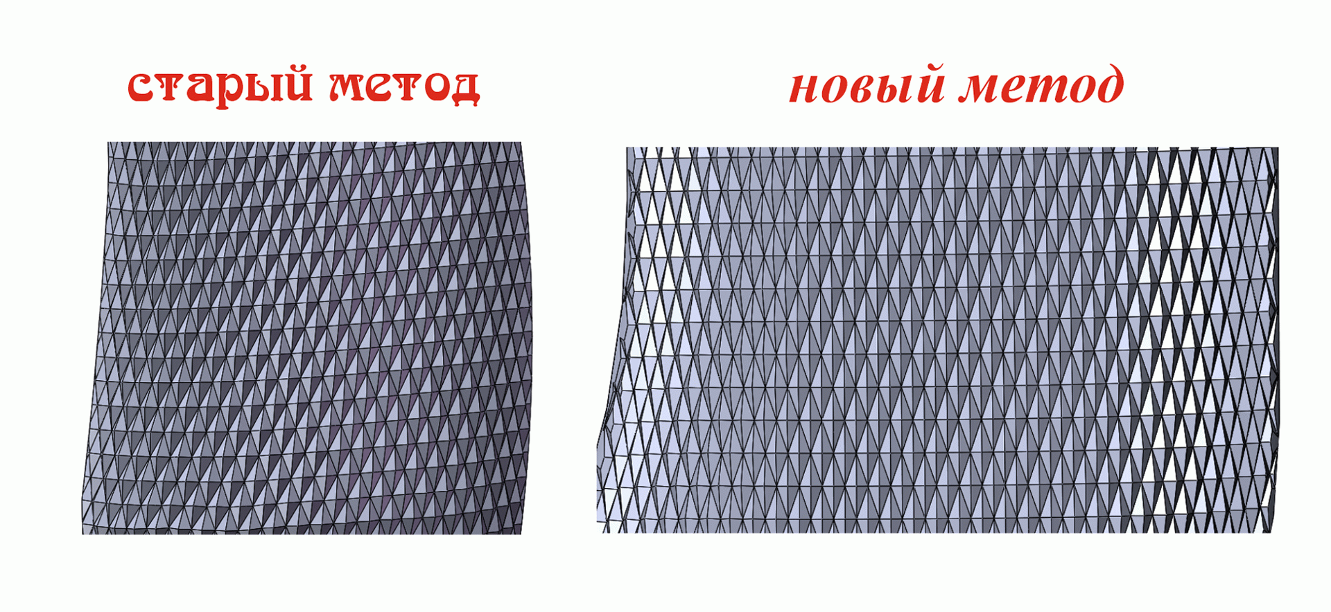 Первое что пришло на ум - увеличить радиус траектории нарезки на выходе, чтобы она не врезалась в опорную поверхность. Вроде, логично, но па практике получил картину, когда у ближних к краям ромбиков вершины до неприличия слизаны (1). Даже в варианте "а-ля в натуре" со срезанием всех верхушек эта картина не вызывает положительных эмоций (2).