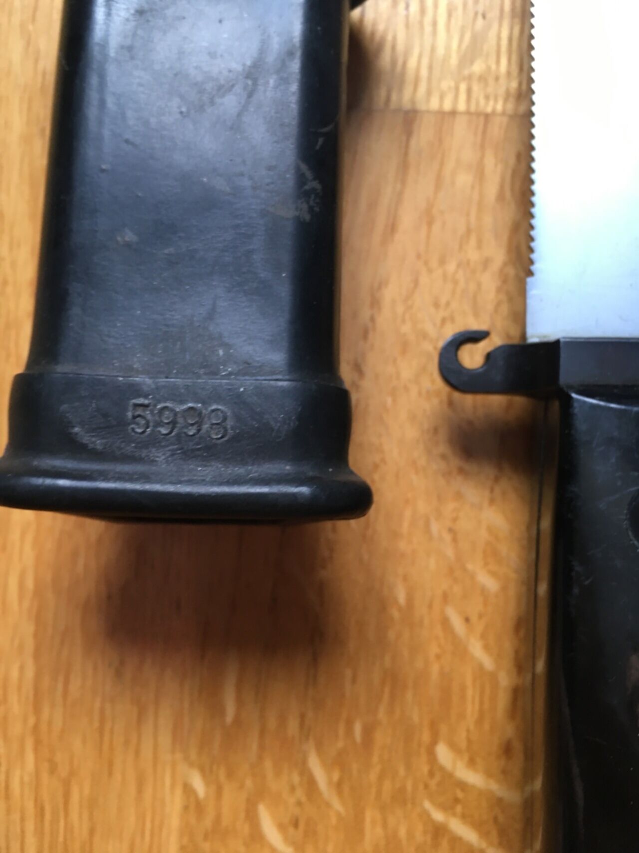 У Вас по ходу ранний штык! На моем немце крючок другой формы и ножны без номера.