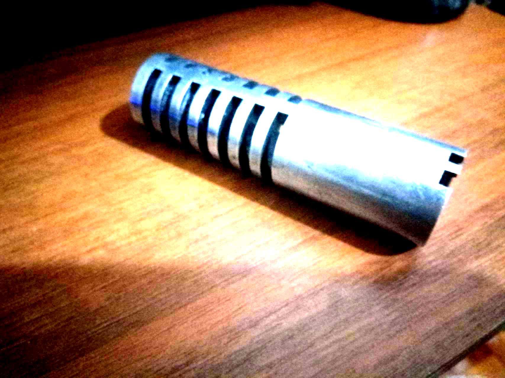 Жаберного типа, из Д-16, подходит на любой АК с резьбой 24/1. Глушит зверски, как стрелка, так и соседей, они аж ползком назад сваливают ![]() При стрельбе очередями, валит ствол вниз, очень сильно. Надо иметь накачанные руки и держать. ![]() К сожалению, он сейчас дома, на той самой МК-03. |