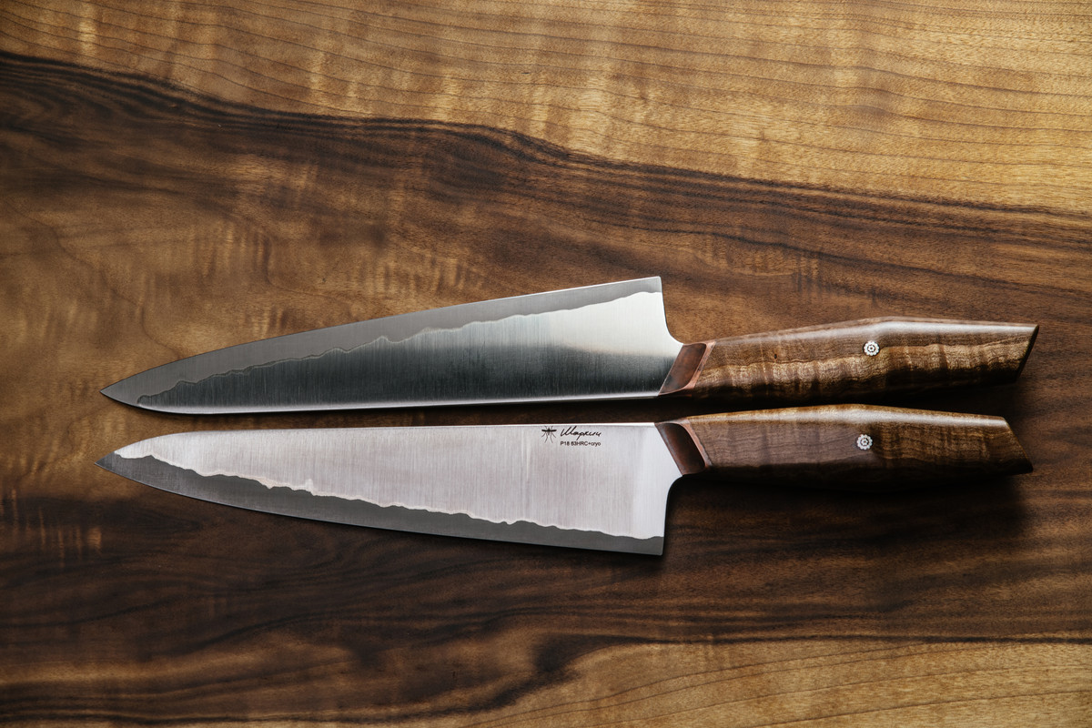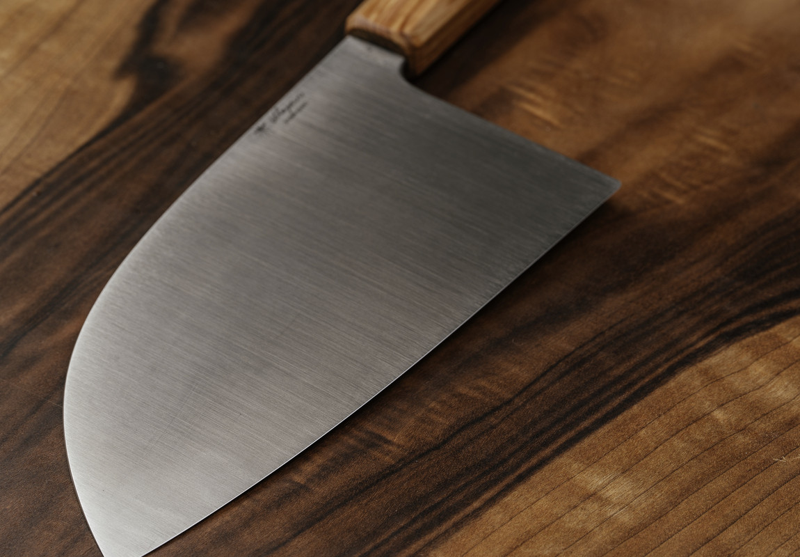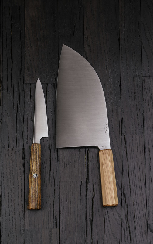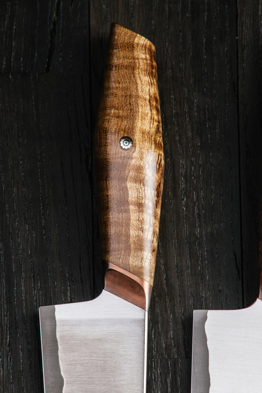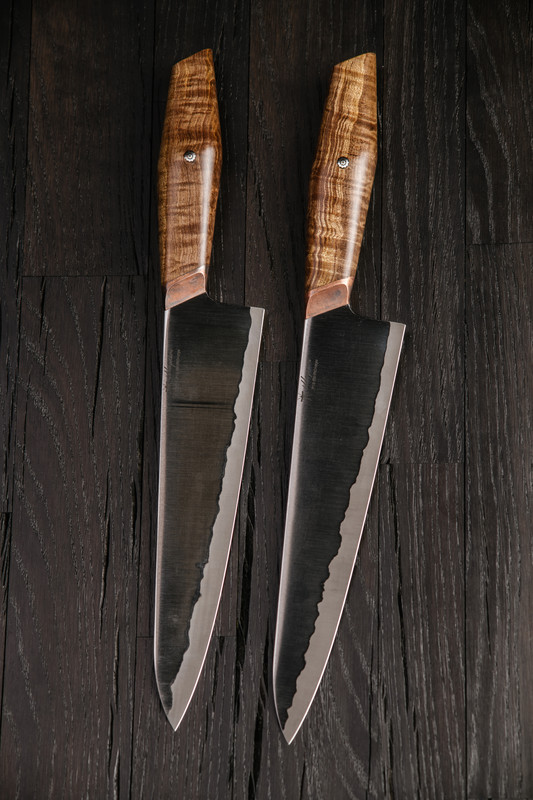 На ноже угол схождения спусков к РК меньше чем на шефе 0,8мм на один сантиметр выше РК. Ножом резали мороженное мясо 🙂 |