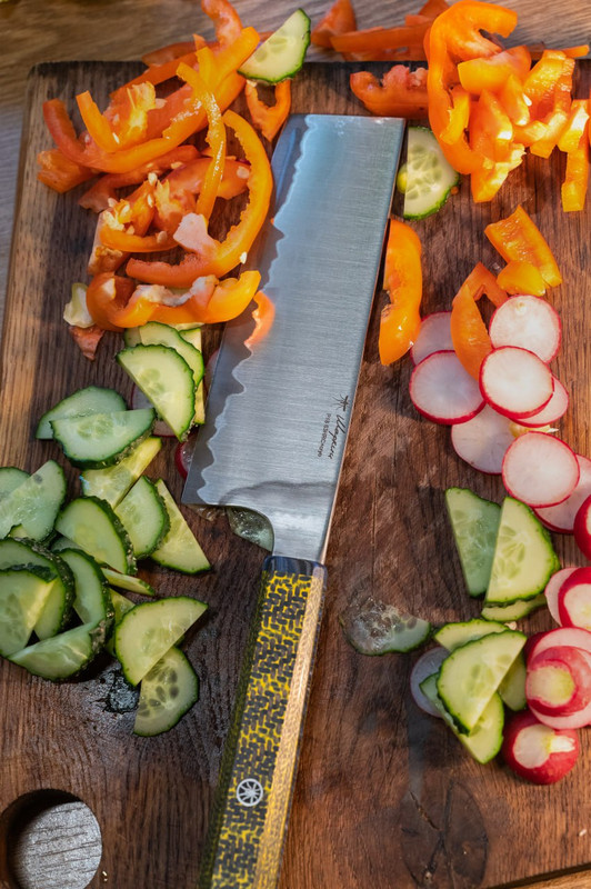 Круто! Была возможность порезать им? Интересны впечатления о MagnaCut на полноразмерном шефе. И ещё вопрос: нож заказной или свободный? |