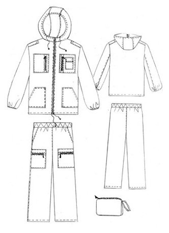 Костюм Тайга Демисезонный. Цена 2150 руб. Куртка удлиненная с капюшоном , с центральной застежкой на тесьму-молнию прикрытую ветрозащитным клапаном на кнопках , двумя верхними прорезными и нижними накладными карманами прикрытыми клапаном, по линии талии стянута тесьмой-кулиской, рукав длинный втачной на манжете. Брюки на притачном поясе стянутом эластичной тесьмой,по бокам карманы с отрезным бочком. Костюм зимний Hunter. Цена 4125 руб. Зимний утепленный костюм "HUNTER" состоит из полукомбинезона и куртки. Куртка укороченная на притачном поясе стянутом эластичной тесьмой, воротник-стойка с внутренней флисовой отделкой, с центральной застежкой на тесьму-молнию прикрытую ветрозащитным клапаном на липучках. Отстёгивающийся капюшен на молнии. Имеет два нагрудных объемных кармана с клапанами, два нижних кармана защищены клапанами на липучках. Рукав втачной по низу стянут эластичной тесьмой и регулируется застежкой-липучкой. Полукомбинезон с застежкой на тесьму молнию , нагрудным карманом на молнии и нижними боковыми карманами с отрезным бочком. Бретели с карабинами , для регулировки роста.Производится из немнущихся тканей.