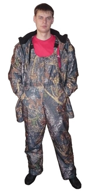 Демисезонный костюм для охоты и рыбалки из ворсовой, не шуршащей мембранной ткани состоит из удлиненной куртки и полукомбинезона.