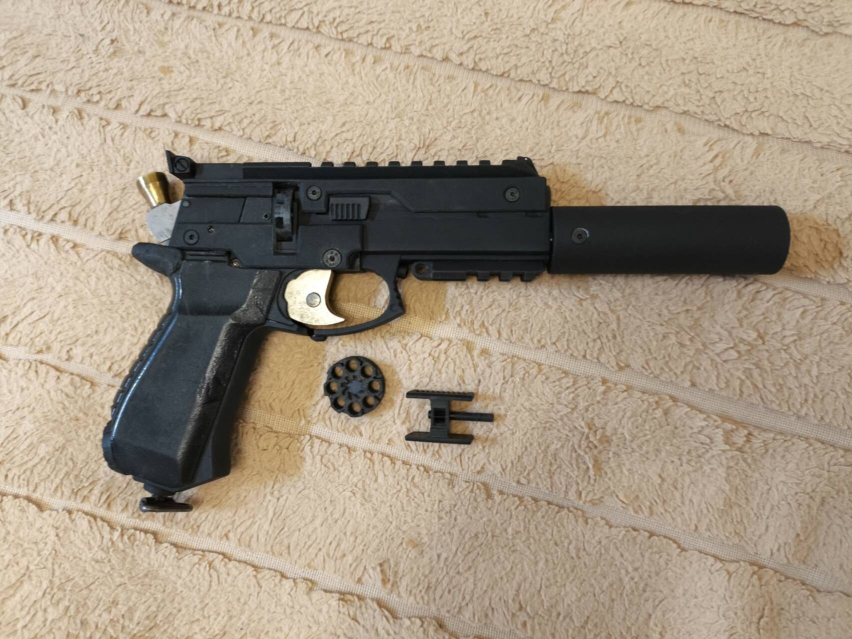 На пистолете стоит увеличенный обтюратор, временный утяжелитель (нужно переделать на более красивый).