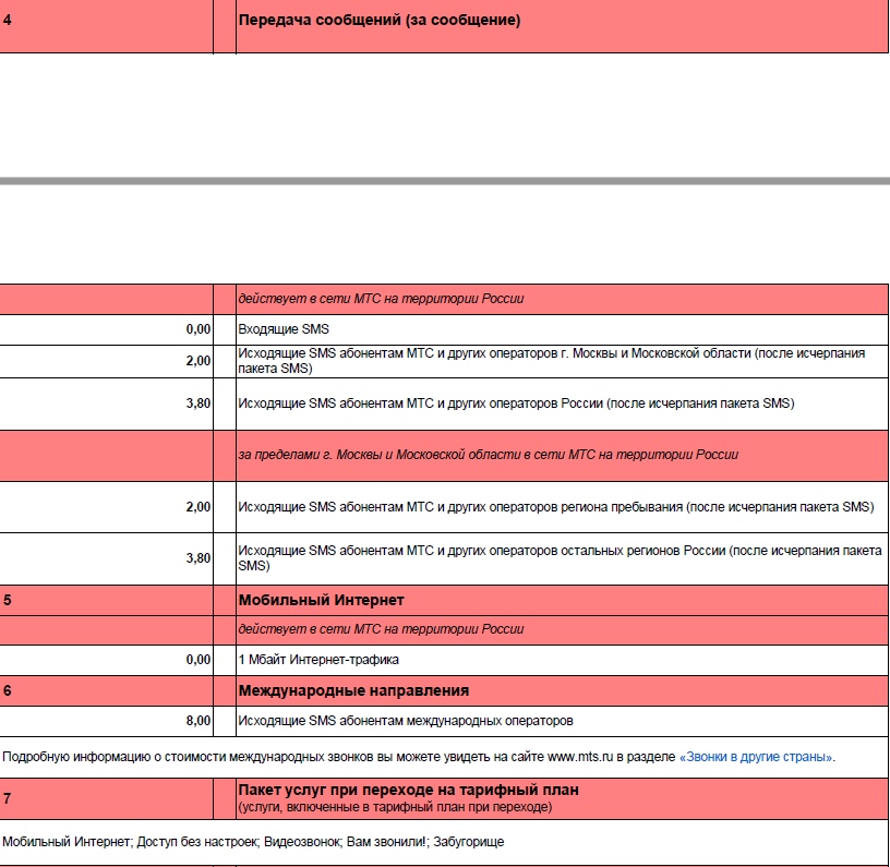 Указанные условия тарифа действительны для абонентов г. Москвы и Московской области при нахождении на территории г. Москвы и Московской области, а также в сети МТС на территории России.