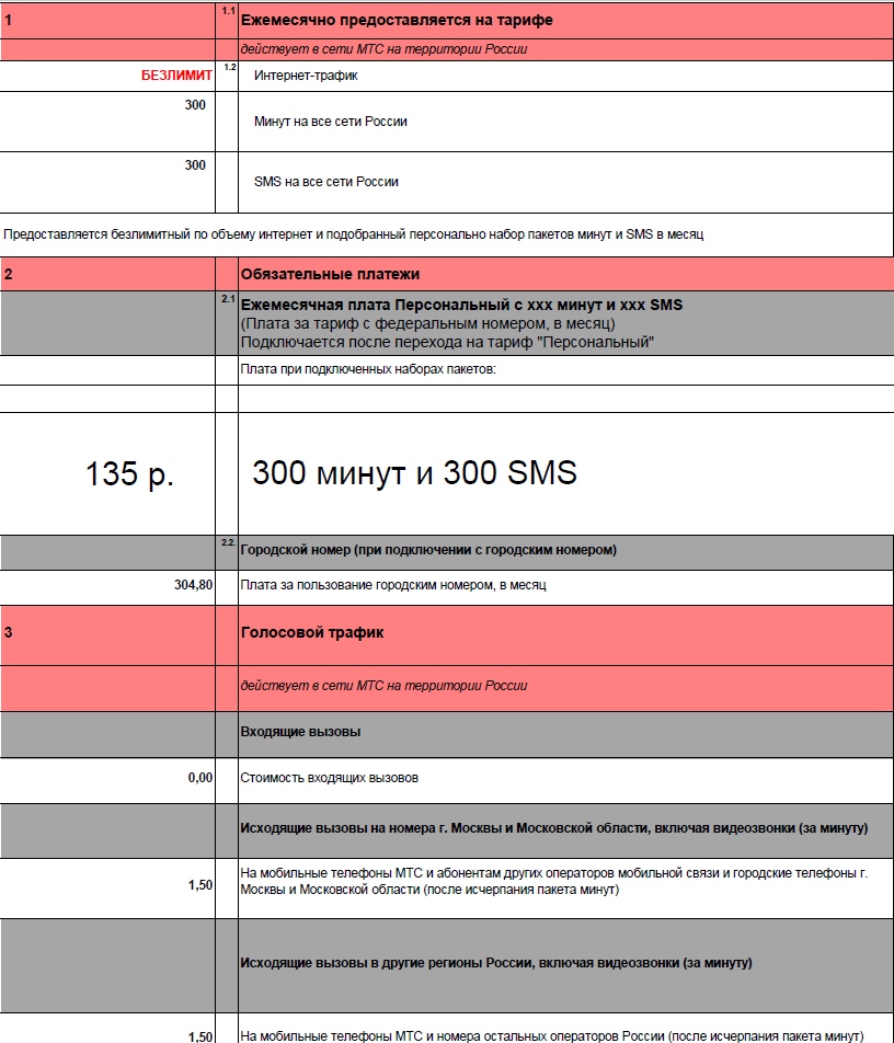 1.1. При переходе на тариф первое предоставление безимитного интернета и персонально подобранных пакетов минут и SMS осуществляется при подключении опции "Ежемесячная плата Персональный с ххх минут и ххх SMS".