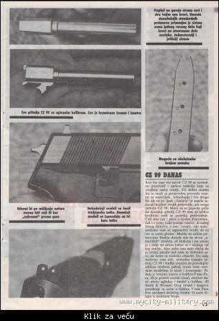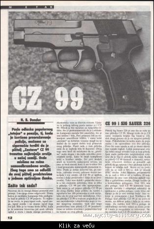 Просто материалы попали под руку и решил повесит их здесь. Вопрос почему у вас не можно купить ЦЗ-99 не к вам или к мне. Кажется что никто в России до сех пор не проявлял интерес к продукции "Заставы". ЦЗ-99 Компакт действительно интересная штука, но не уверен что его можно наити в любом оружейном магазине, точнее, вероятно можно получить по заказу - просто позвоните в завод и договоритесь. Вообще, "Застава" такой завод будто им бабки не нужные, им стыдно их брать - даже пистолеты сделаны по личному заказу не стоят бешеные деньги. А заказиваете в кабаке у входа в завод, с рюмочкой ракией и жареним ягненком на столе. Не шучу. Качество материала и изготовления всей линейки 99 на европейском уровню служебного оружия (у нас ими вооружены менты). В половине '90-их, во время эмбарго, замечено чуть ниже качество материала и грубоватый финиш, но пистолет все-таки, как ammanchik сам заметил, сделан с огого запасом. На концу концов, у нас даже работа оружейника не дорогая и за, скажем, 100 евро ваша 99-я станет работать как часы.