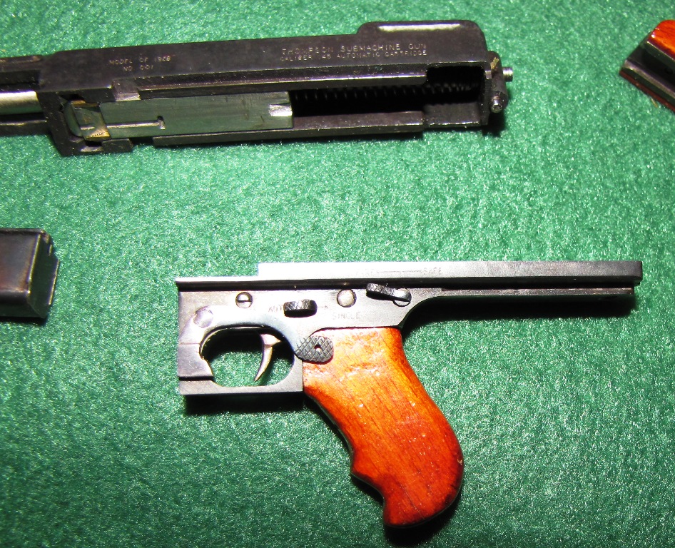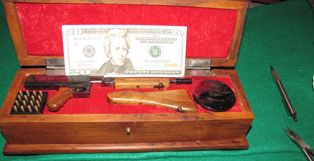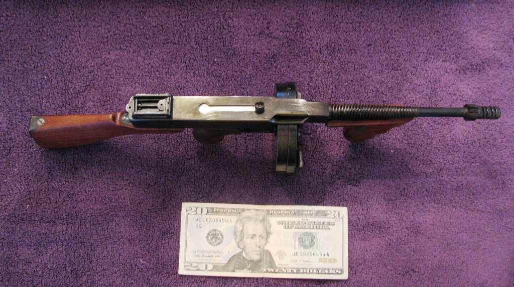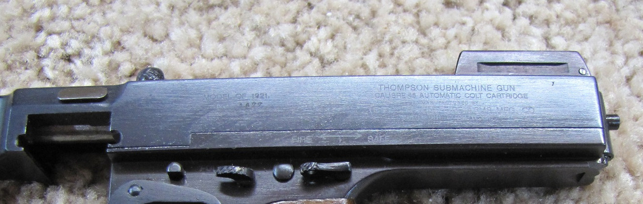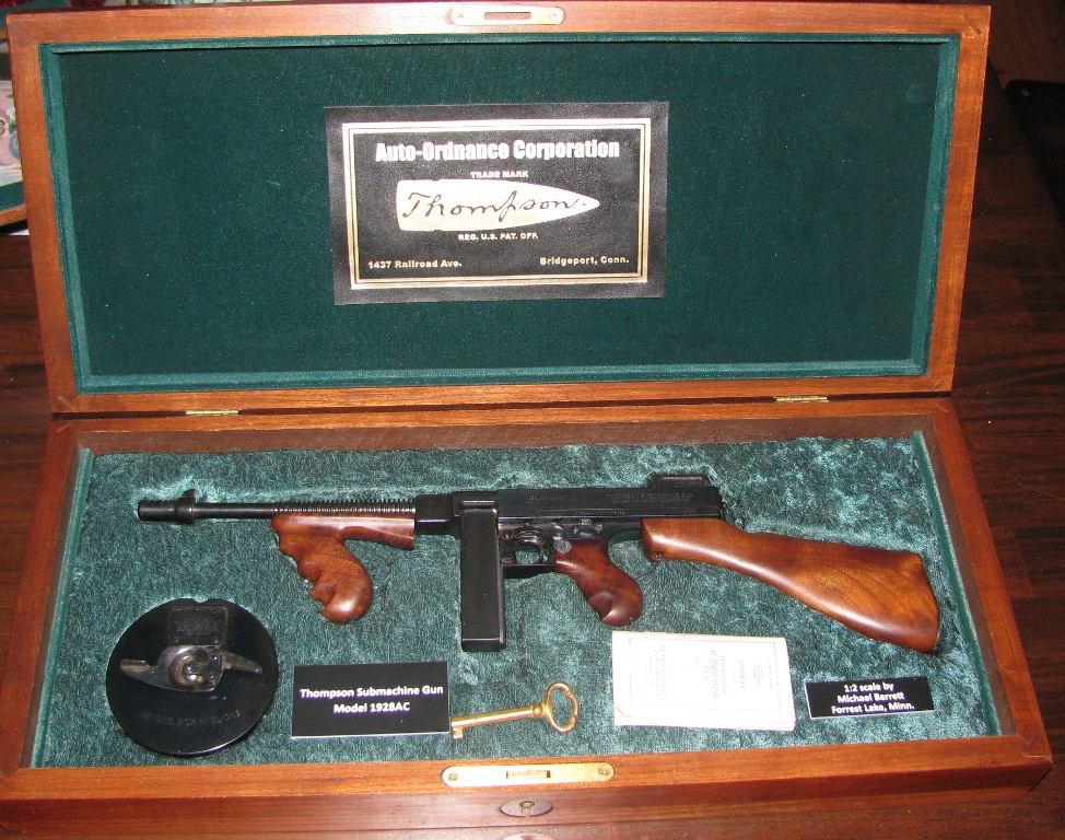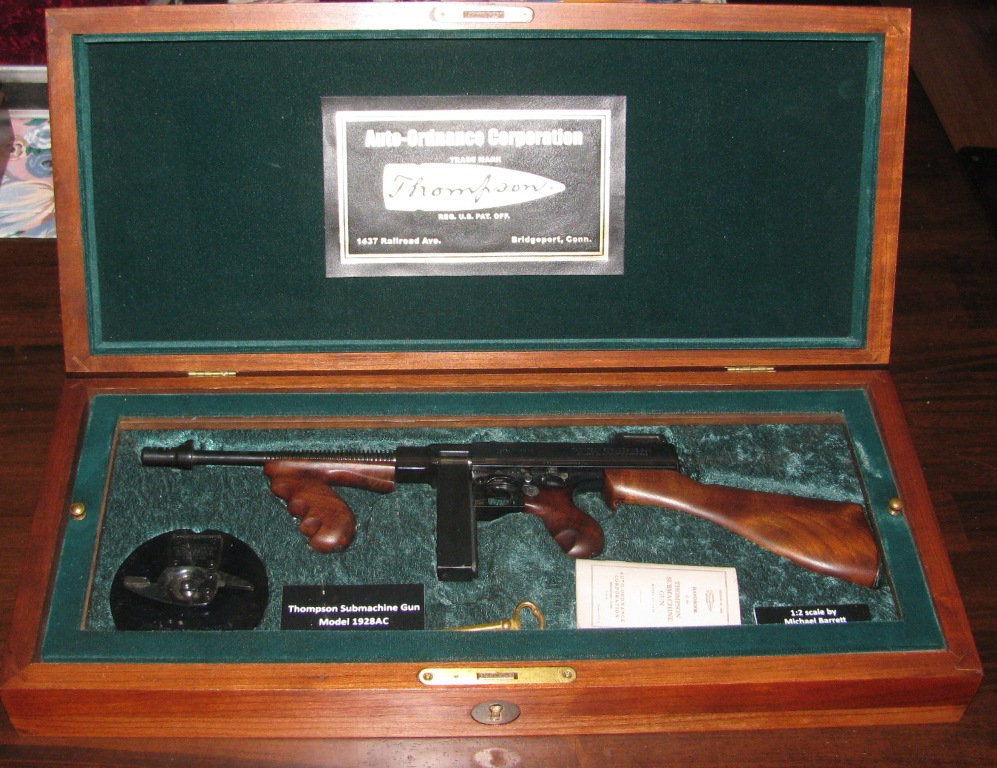 Это еще одна модель Томпсона 1921 года в масштабе 1:2, сделанная Эдмундом Гарригом в Техасе, США. Он высочайшего качества и полностью функционален, но без боевого огня.