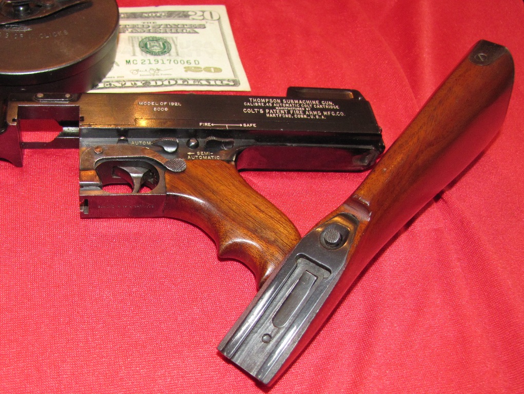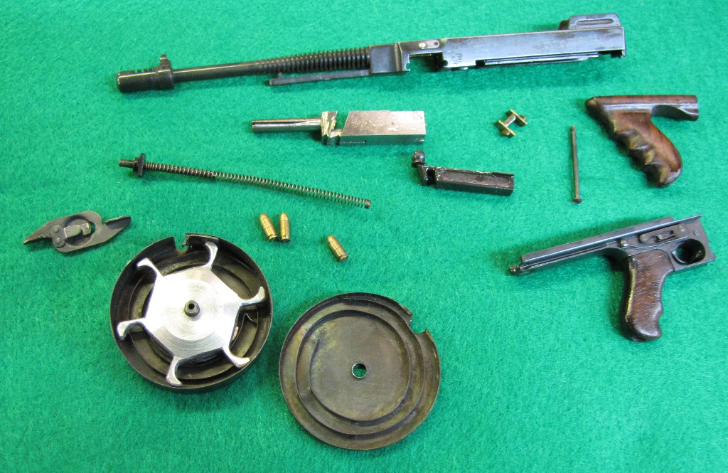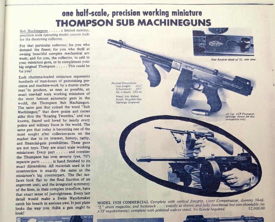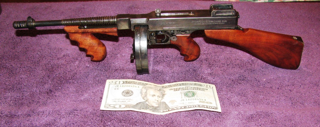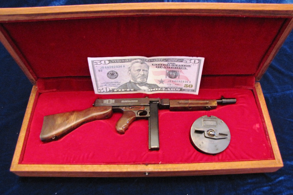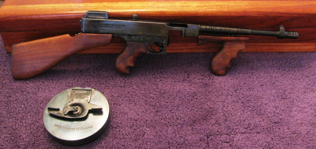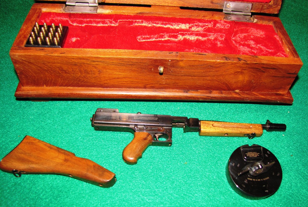Это еще одна модель Томпсона 1921 года в масштабе 1:2, сделанная Эдмундом Гарригом в Техасе, США. Он высочайшего качества и полностью функционален, но без боевого огня.