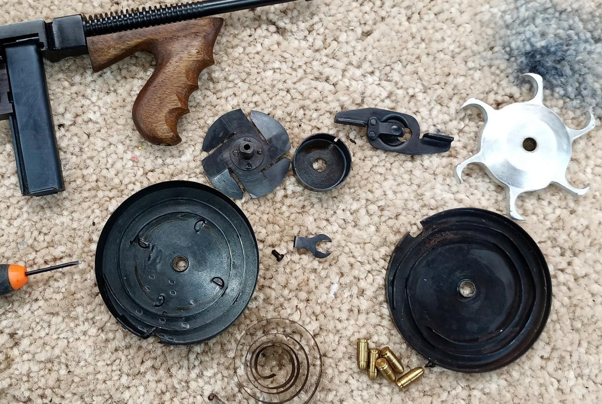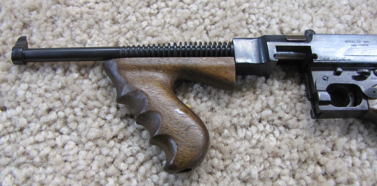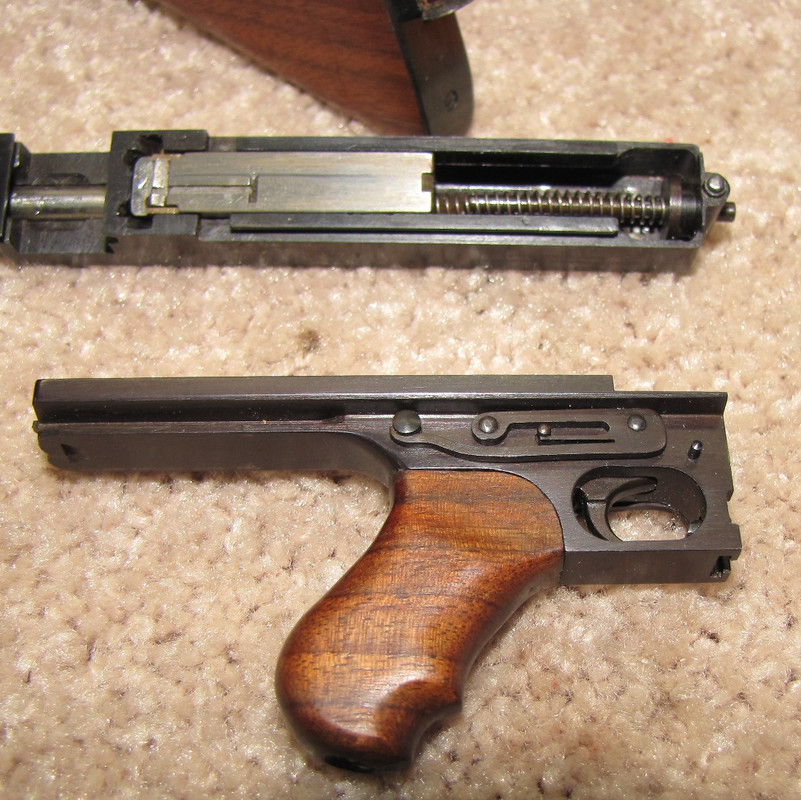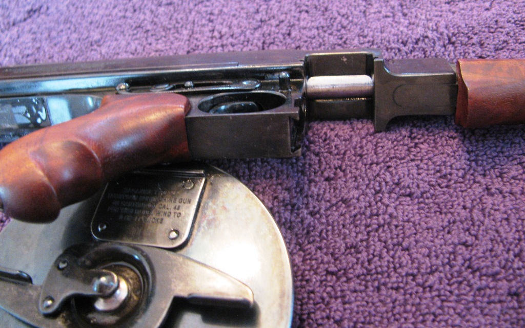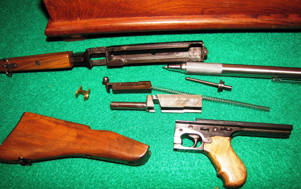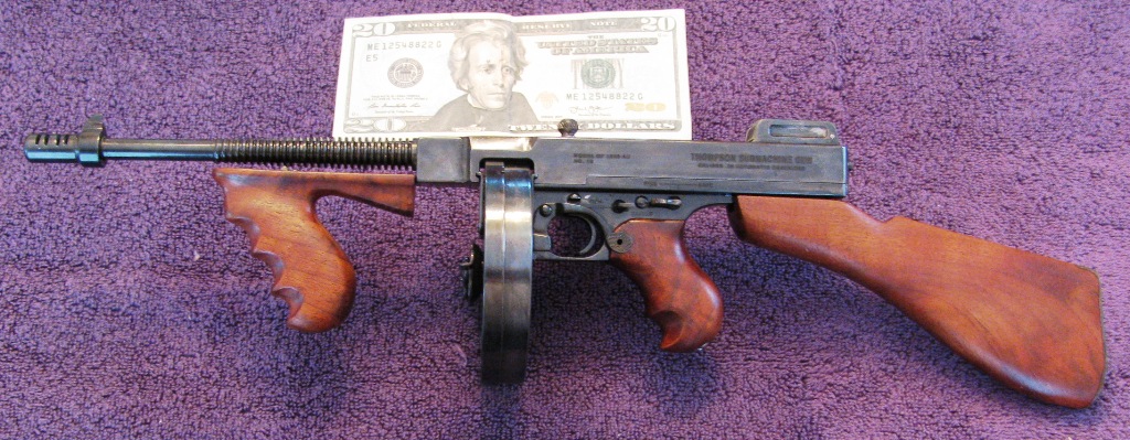 Это еще одна модель Томпсона 1921 года в масштабе 1:2, сделанная Эдмундом Гарригом в Техасе, США. Он высочайшего качества и полностью функционален, но без боевого огня.
