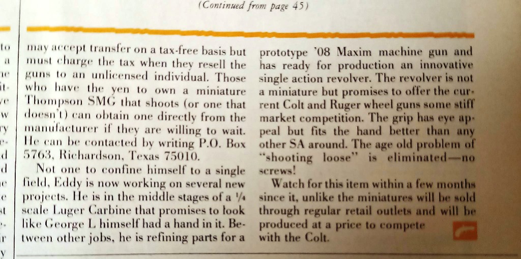 Все вышеперечисленные миниатюры были изготовлены компанией под названием Miniart. Miniart находился в Москве, Россия. Они нанимали высококвалифицированных мастеров для производства высококачественного миниатюрного огнестрельного оружия. Эти миниатюры были проданы коллекционерам по всему миру. К сожалению, Miniart закрыли свои двери в 1990-х годах.