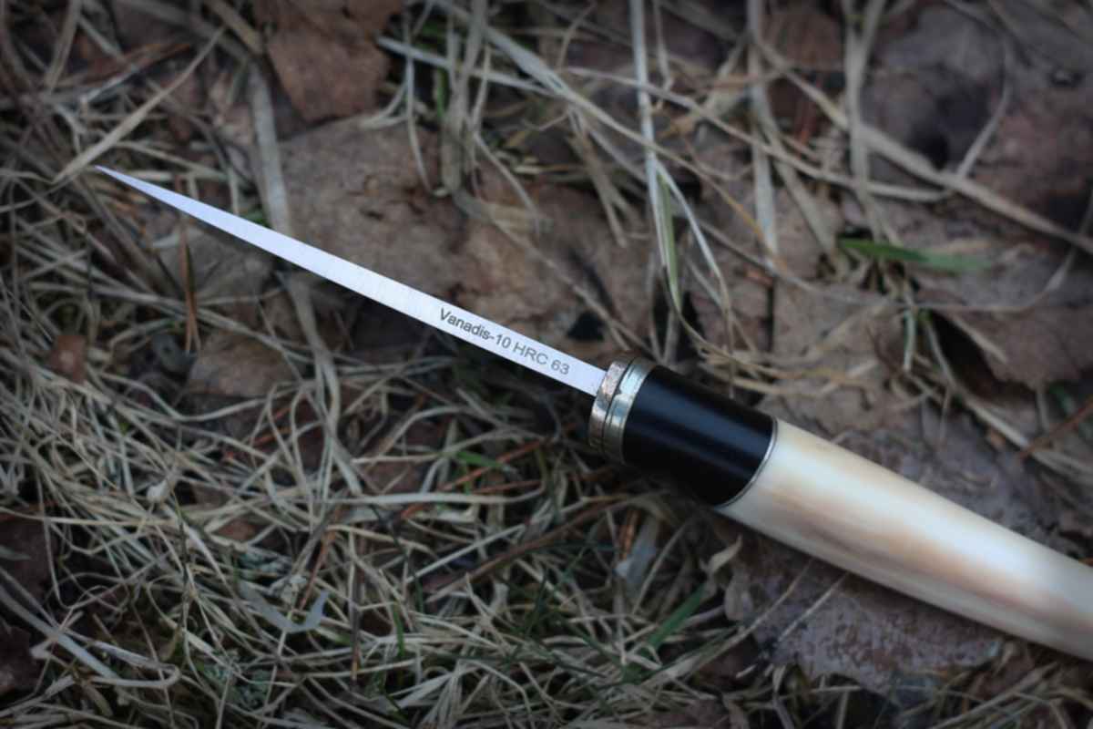 Ага, как вариант. Там кстати это довольно эффектно смотрится. На клинке - небольшое клеймо мастера, а марка стали - на обухе (мелким шрифтом). |